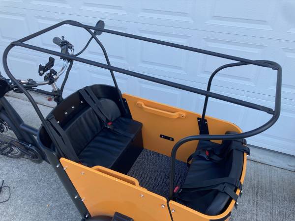 With this european-style box bike, you will be the envy of the entire town! I think this is the only one of this type in Bellingham. The model is 2021 Ferla Inspire. To buy it new would be $3900 (on sale) plus $300 assembly, and this includes $500+ of extras. Here’s the manufacturer website for more details: https://ferlafamilybikes.com/products/ferla-cargo-bike-inspire