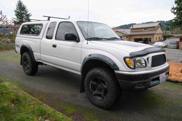 2001 Toyota Tacoma. Clean title. $14,000. 4X4 TRD package with factory locking rear differential. 3.4l V6 with 5-speed manual transmission. Extended cab with six foot bed, sunroof, sliding rear window, Leer canopy, and Thule roof rack. I bought this truck 3 years ago with about 206,000 miles on it and it now has about 211,000 miles. It runs great and the body is in excellent condition for its age with minimal rust. I’m selling it because I bought a more modern daily driver for the creature comforts / long trips, and I can’t justify keeping both vehicles.