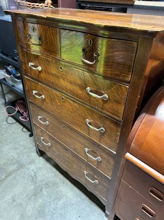 Nice dresser in Tiger Oak Circa 100 plus years I would be glad to help you load it Drawers work too!
